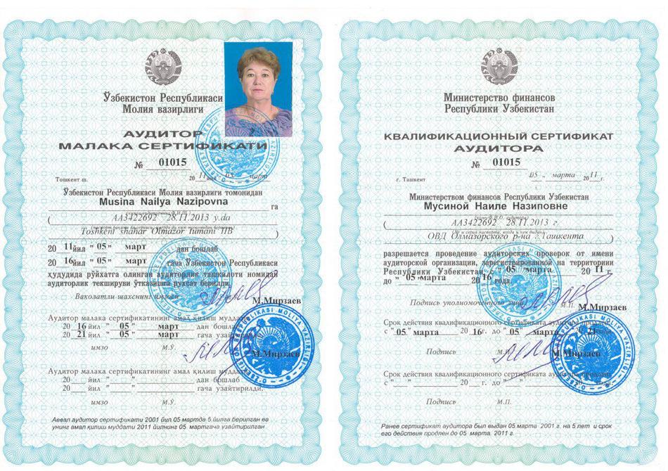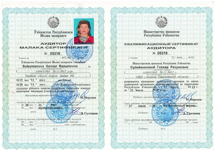 Сертификаты: Квалификационный сертификат аудитора №06105 от 20.11.2022г.